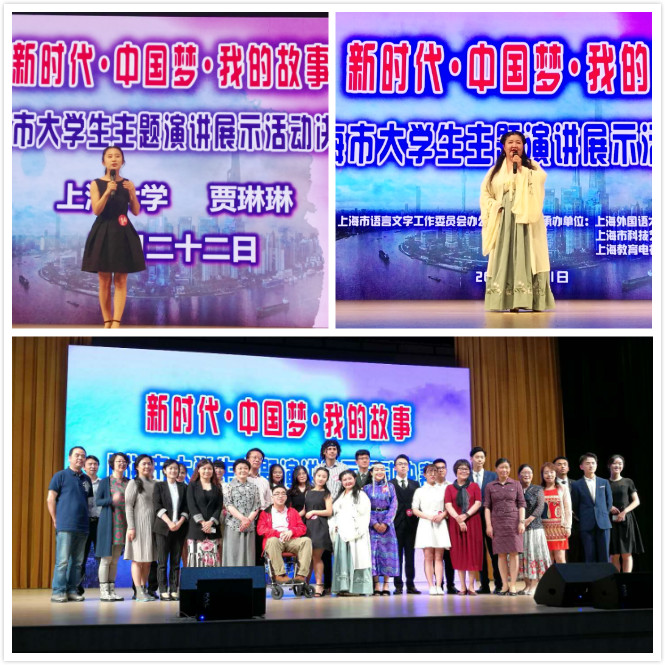 新时代中国梦我的故事上海市大中小学生主题演讲展示活动,在历时近五个月的基层征集推送、市级复审遴选和现场决赛角逐后,日前,经专家终审,获奖结果线上揭晓:我校美术学院贾琳琳、国际交流学院地娜斩获一等奖,悉尼工商学院王奕曾获三等奖,充分展现了我校中外学子筑梦、逐梦的良好精神风貌。
