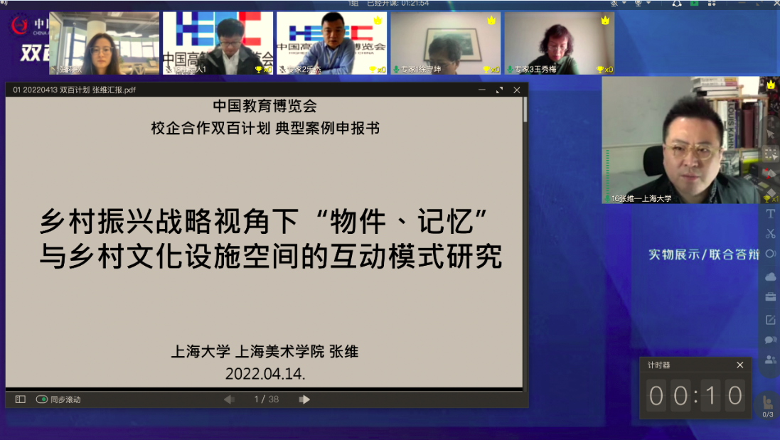 2022年4月14日,中国高等教育博览会“校企合作 双百计划”双走访活动通过线上方式走进上海大学上海美术学院。中国高等教育学会“双百计划”走访专家组组长常州大学副校长徐守坤教授、专家组成员东软教育科技集团华南区总经理乐杰、华北电力大学工程训练与创新创业教育中心主任王秀梅一行,对上海大学上海美术学院与山东正阳工程咨询有限公司联合申报的协同育人实践项目的典型案例开展了线上走访。