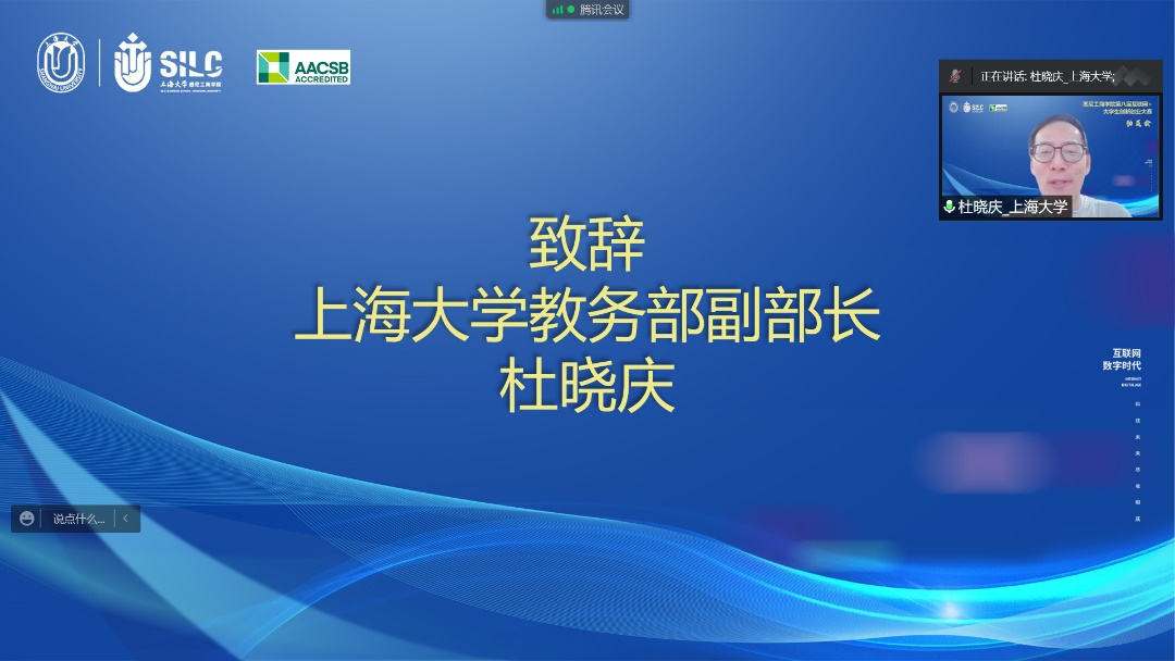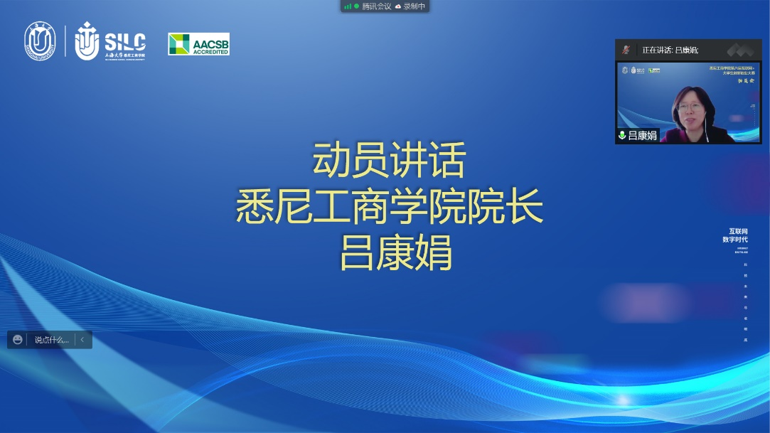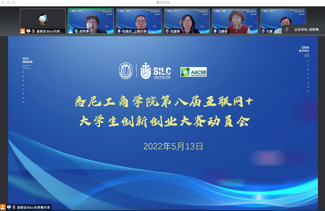 5月13日下午,悉尼工商学院八届互联网+大学生创新创业大赛动员会以腾讯云端形式顺利召开。上海大学教务部副部长杜晓庆、上海大学审计处处长尹应凯、上海大学教务部实验实践处主管杨霞,悉尼工商学院党委副书记、院长吕康娟,学院党委副书记、副院长卫静芬,学院副院长方慧及学院各系部主任、师生代表共200余人参会,会议由悉尼工商学院副院长胡笑寒主持。