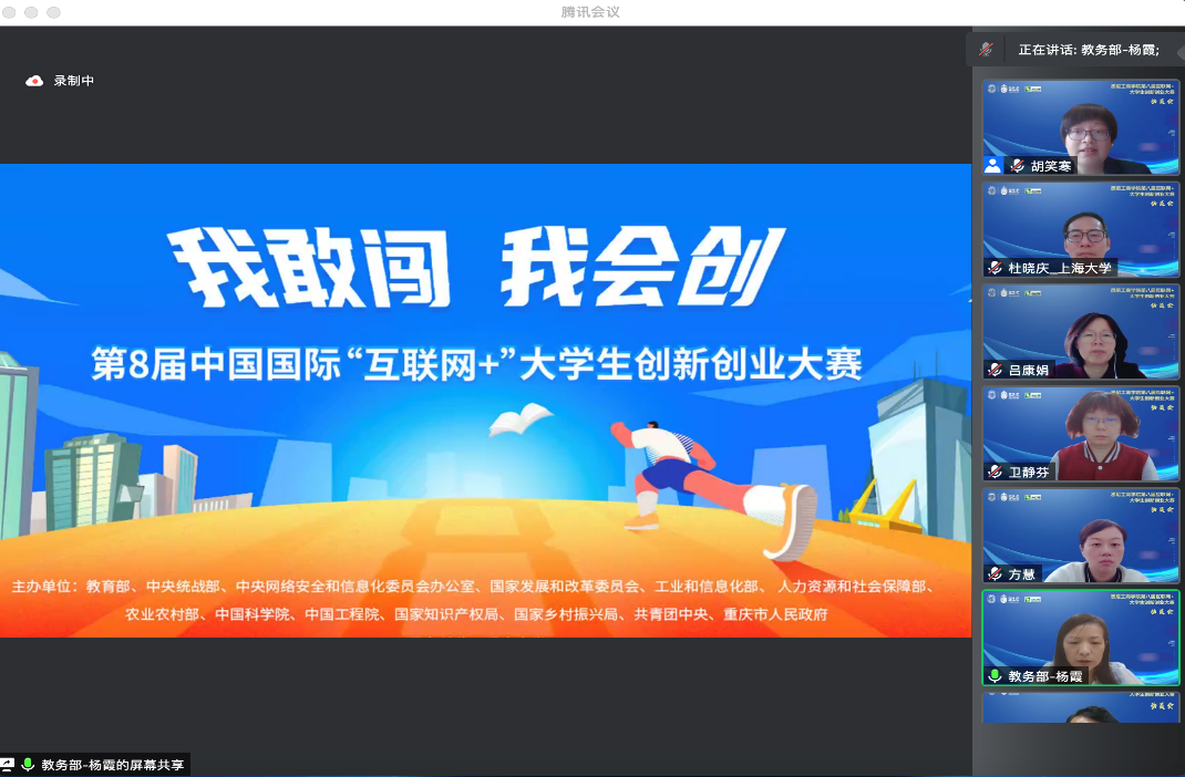 上海大学教务部实验实践处主管杨霞为参加本次动员会的师生详细解读了第八届互联网+大赛的规则政策,介绍了上海大学关于大赛报名工作的进展和学生参赛所需做的准备工作,分享了大赛相关的学习及培训资料,并特别推荐悉尼工商学院的师生关注主赛道的国际项目比赛及红旅赛道项目。