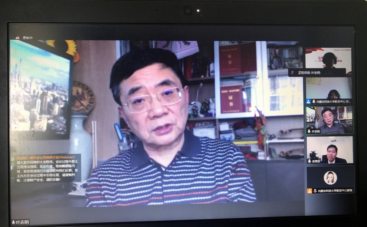 “听叶老师的报告更像是悟道”“叶教授的报告不仅是课程思政方法论,更是教书育人的根本遵循”……5月9日下午,上海大学原副校长,教育部课程思政示范课程、教学名师和团队负责人叶志明教授以《师人方可为人师:谁在培养人是做好课程思政之关键》带来精彩第二讲。他从当前师德师风建设谈起,引入丰富课例和育人故事,讲述课程思政不等于课堂思政,课程思政看似在课程,本质在教课程学课程的人,首先在教师,即“谁在培养人”是关键,课程思政是载体是手段,立德树人才是目的。他指出,它是教师的言传与身教;是有中没有、没有中有的辩证关系;是师生间心灵沟通与传递;是教师的师德师风之具体体现;是教师言传身教教书育人初心之回归,教师做好课程思政与学校三全育人环境构建必须联动,缺少哪一环都会影响立德树人成效。第二讲,同样有700余名教师线上参与和互动。