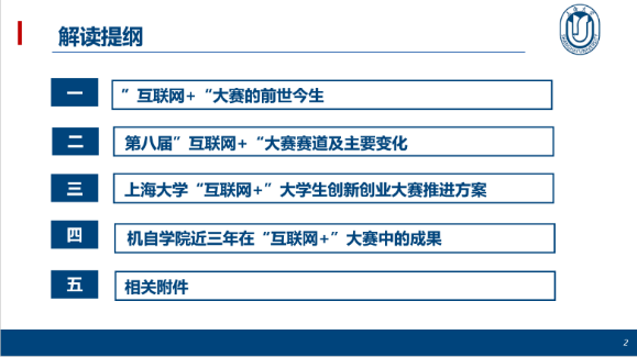 为更好的聚焦“五育”融合创新创业教育实践,激发青年学生创新创造热情,进一步推进我院“互联网+”大学生创新创业大赛备赛工作,5月7日晚上,机自学院专题召开“互联网+”大学生创新创业大赛启动会,教务部副部长杜晓庆,教务部实验实践处副主管杨霞,机自学院院长于瀛洁,上海大学校友、杭州宇树科技销售总监陈立,机自学院及兄弟学院师生共计近600人参会,机自学院党委副书记、副院长杨扬主持会议。