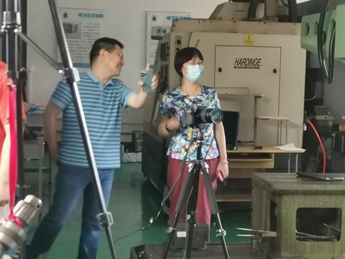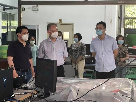 总支书记、教务部副部长顾晓英部长对教学环节课程思政的融入细心指导,并对实践创新工作提出了希望,她认为这次疫情下封闭在工训中心录课直播和线上互动教学,创新了原先单个项目内的教师小团队单兵作战,这次云实习教学,融通了不同工种不同项目的教师队伍,看到了我们有一支既有钢铁般工匠意志又有智能时代才艺迸发的青年教师队伍,他们会动手动脑,乐于彼此伸出援手,实现了大工训中的一个大,就是教师教学团队的大合作。待疫散云开,学生从云端虚拟随时来到实地,老师们会在机器旁等他们,会让他们亲自体验“大变活人”,强化他们智能制造之梦。
