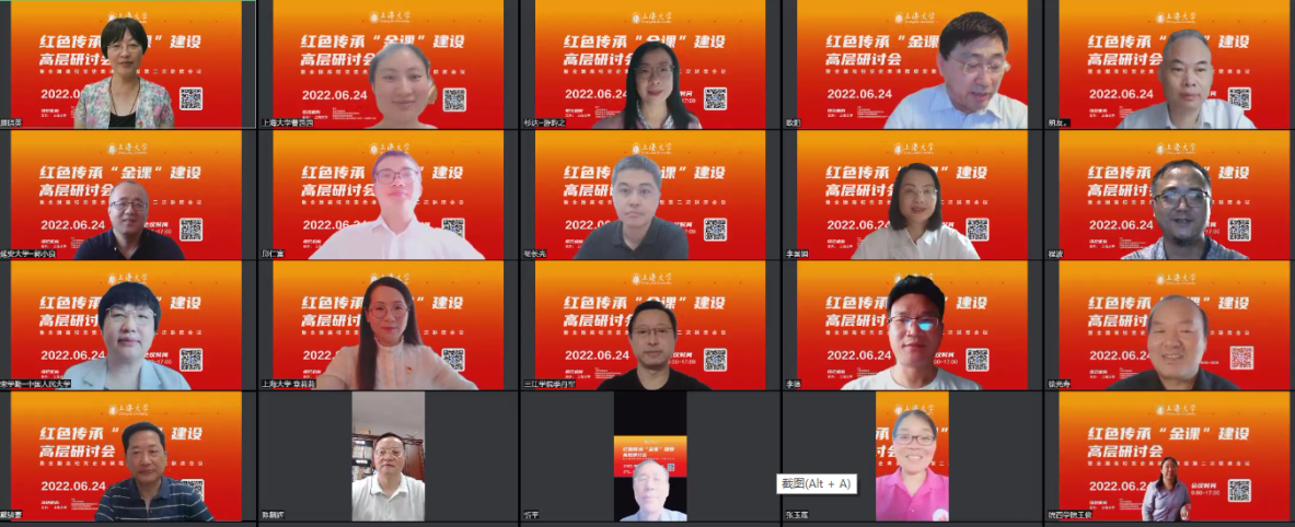 2022年6月24日,由上海大学主办,上海大学教务部、“教育部课程思政教学研究示范中心”“全国高校党史类课程联盟”、上海高校思想政治理论课名师工作室——顾晓英工作室承办的“红色传承‘金课’建设高层研讨会暨全国高校党史类课程联盟第二次联席会议”在线上召开。