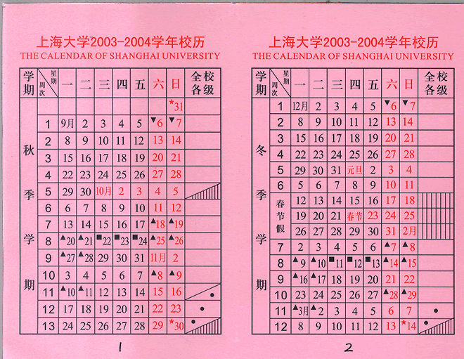 上海大学2003-2004校历