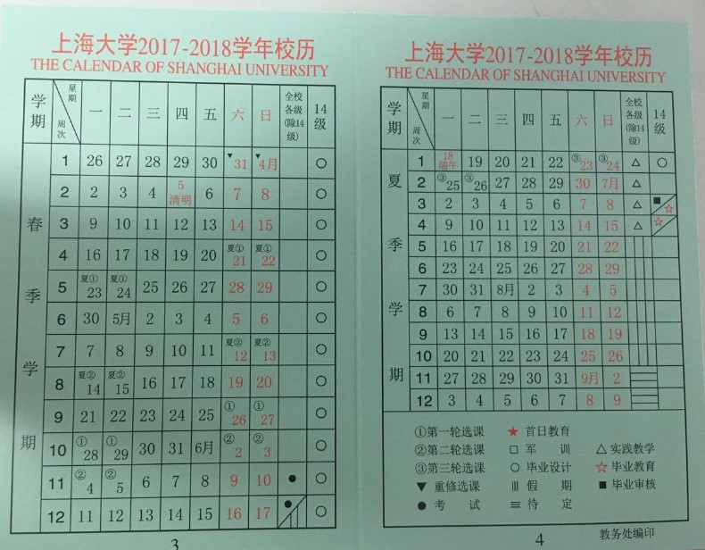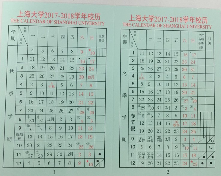上海大学2017-2018校历