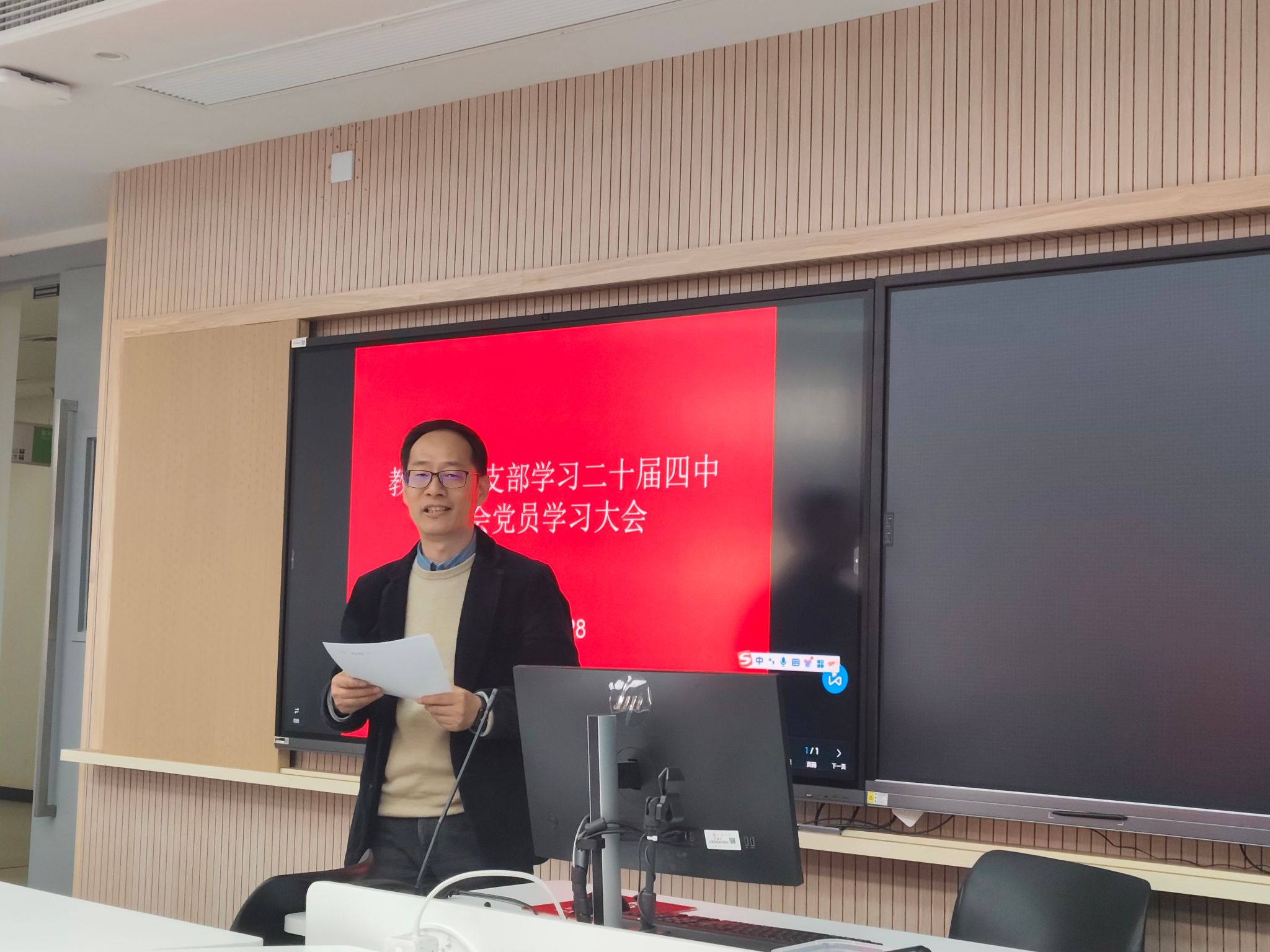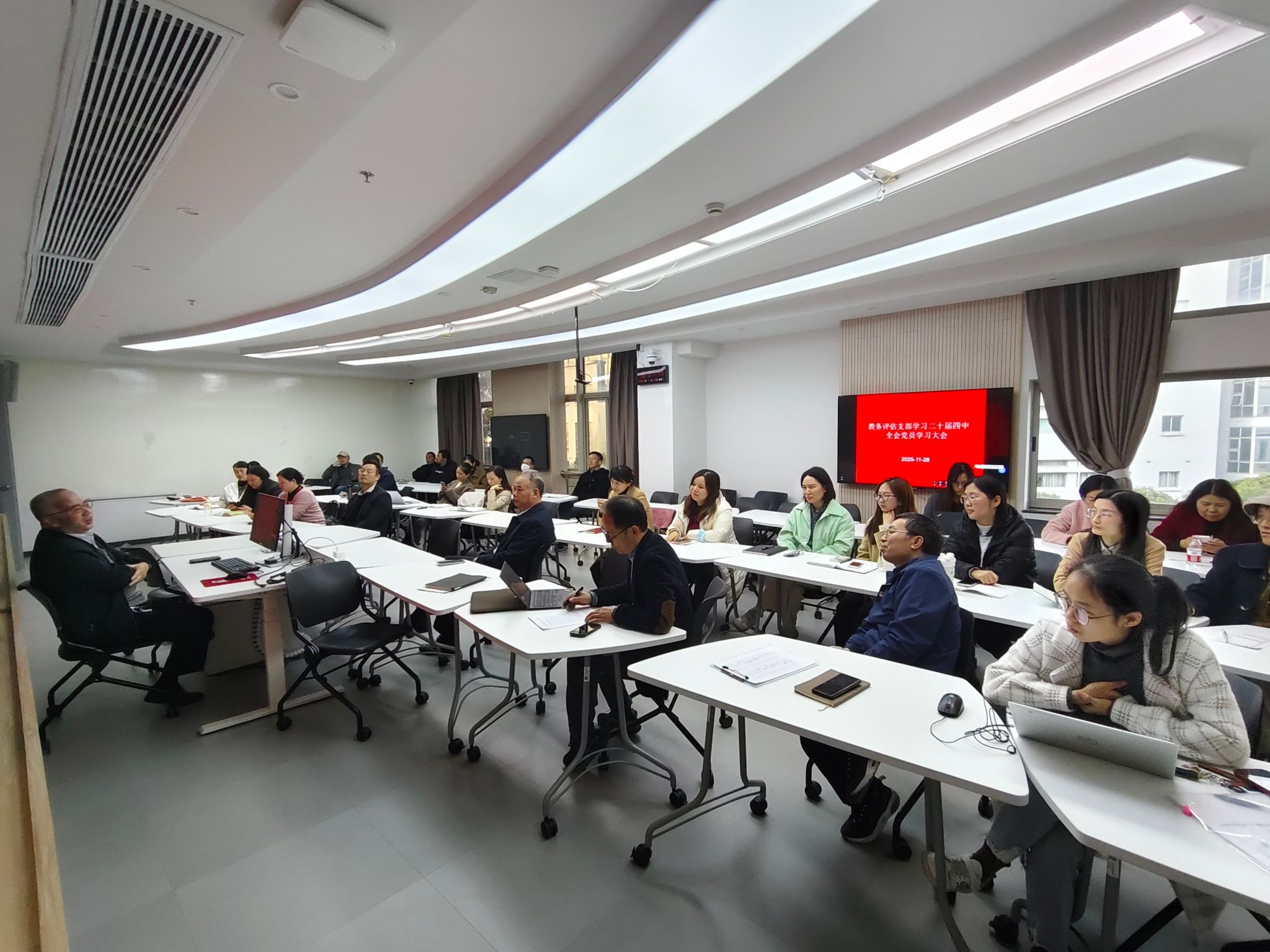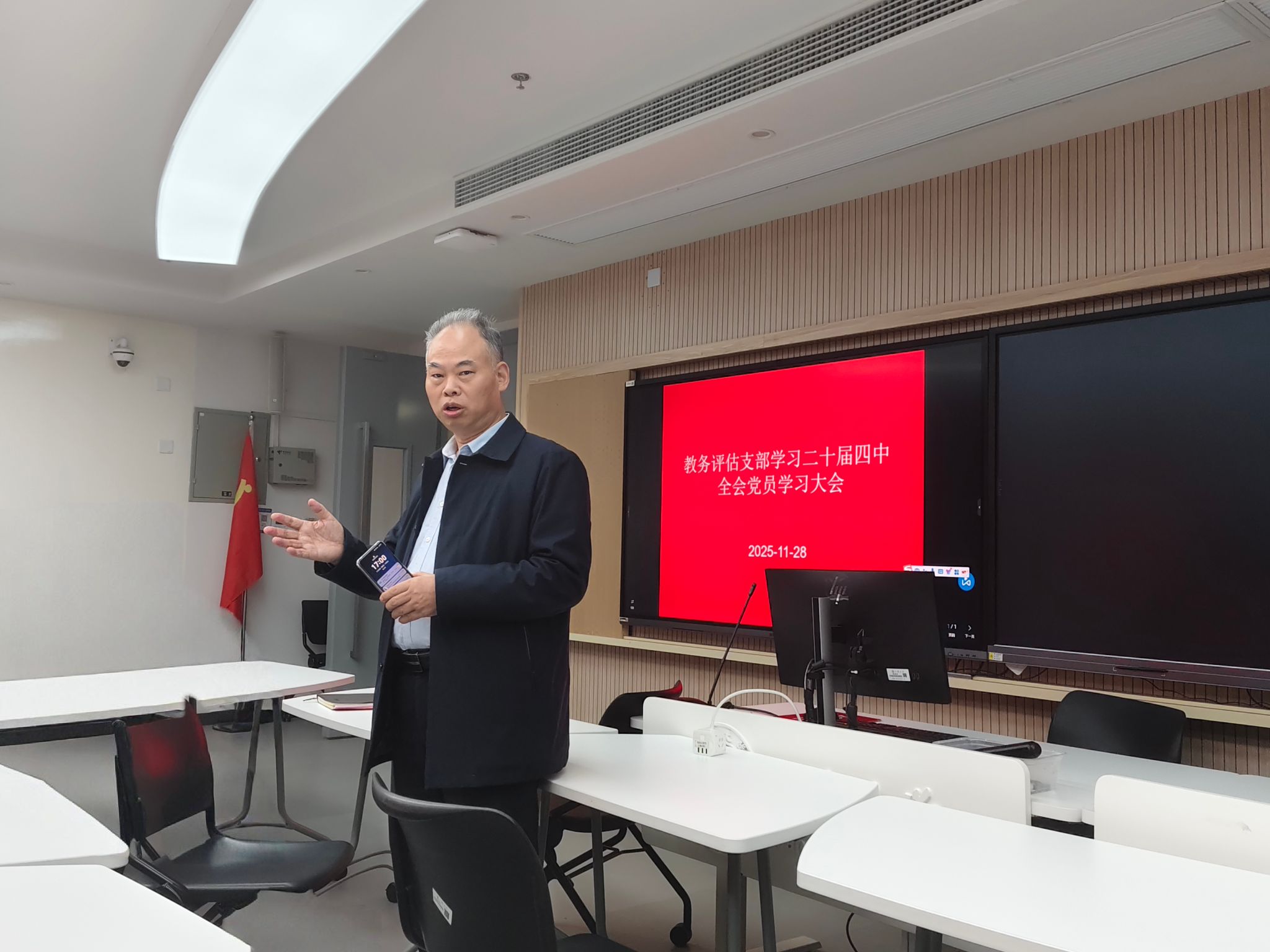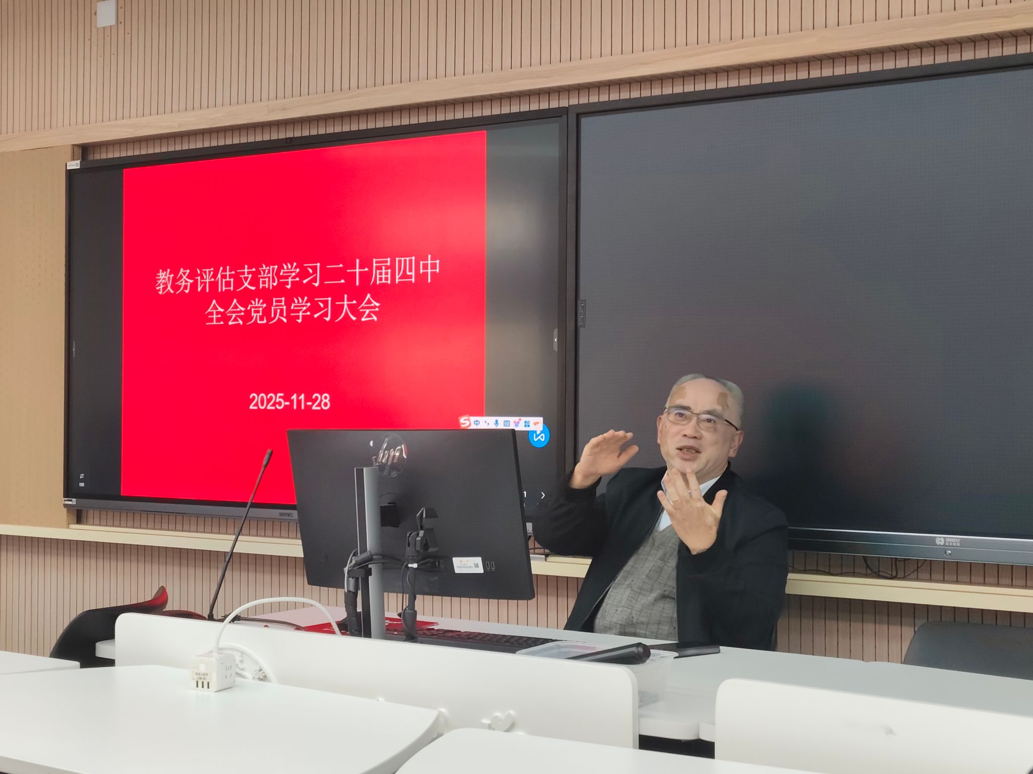 11月28日下午,为深入学习贯彻党的二十届四中全会精神,推动会议精神与教育教学工作深度融合,全面落实学校专业结构调整和学期优化的核心任务,教务评估支部在B楼316室召开二十届四中全会专题学习会。全体党员齐聚一堂,通过党课讲授、交流研讨等形式,在思想碰撞中凝聚奋进力量,在笃定方向中践行初心使命。本次专题学习会由支部书记辛明军主持。