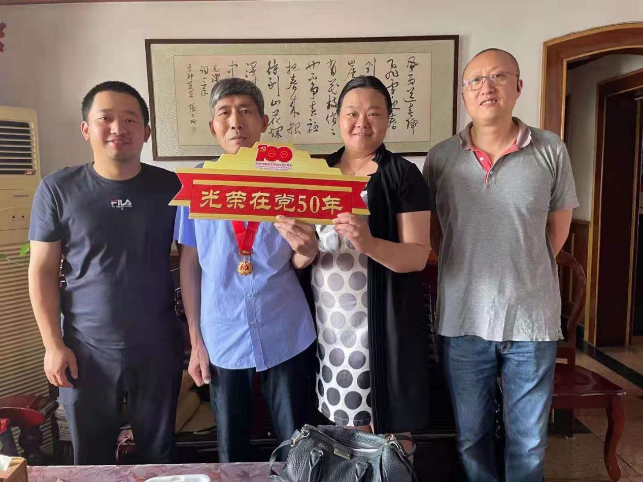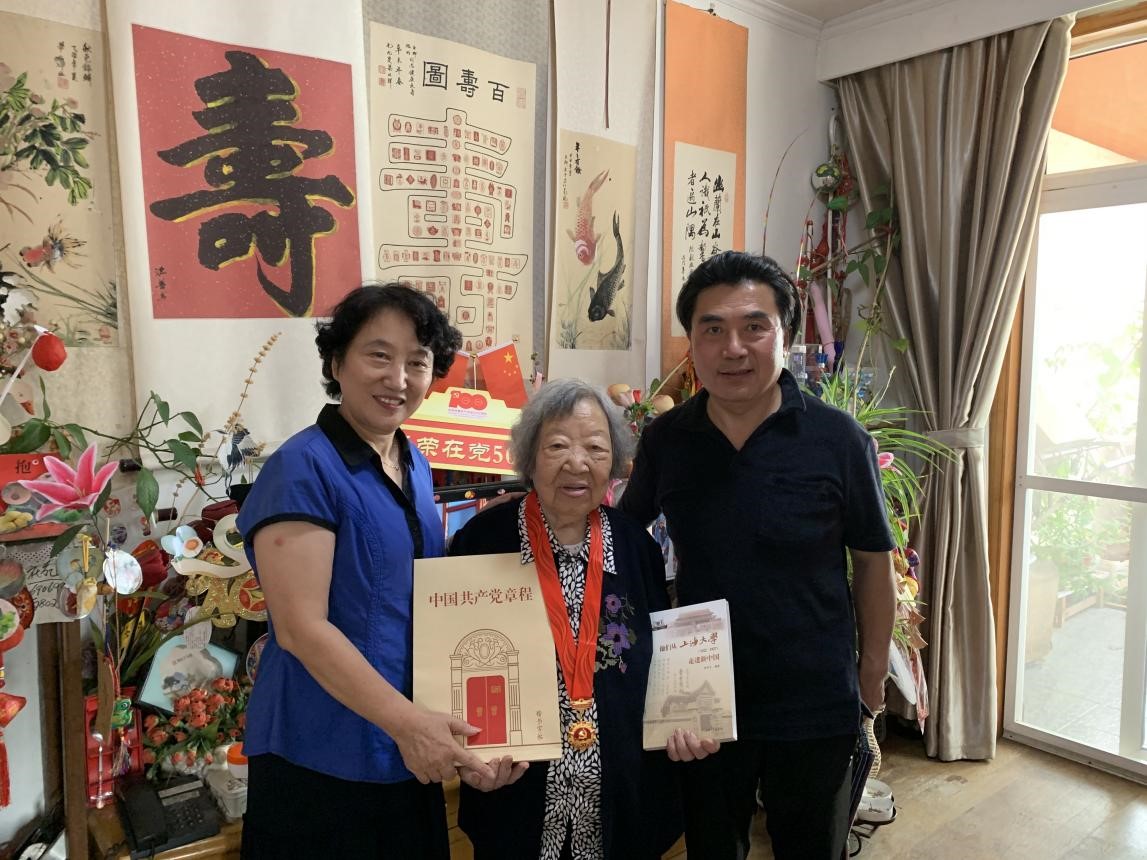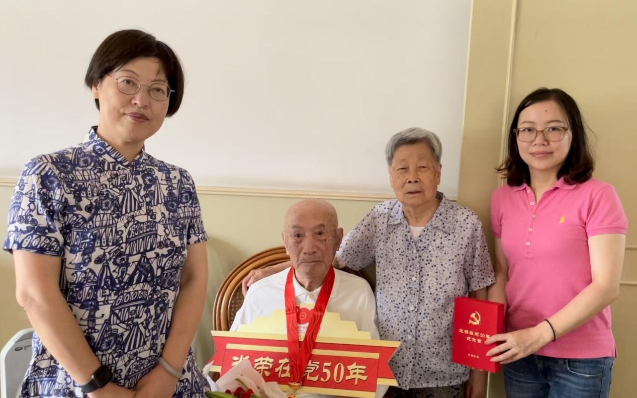 中国共产党成立100周年之际,中共中央办公厅印发《关于做好“光荣在党50年”纪念章颁发工作的通知》,这项工作是中国共产党成立100周年庆祝活动的重要组成部分。50多载的日日夜夜,半个世纪的拼搏奋斗,老党员坚守岗位默默奉献,生动体现了中国共产党人对理想信念的虔诚执着、对党和人民的无比忠诚、对红色基因的传承弘扬。今年,上海大学教务部共有15名老党员获得“光荣在党50年”殊荣。其中,穆青老师党龄已有74年。谢颖达老师已是96岁高龄,党龄也有71年;七一前夕,机关四总支、教务评估党支部、现教中心党支部和工训中心党支部领导分别走访慰问了部分老党员,为因身体原因未能到现场的部分老党员送去“光荣在党50年”纪念章,希望老同志身体健康、心情愉快,离岗不离党、退休不褪色,充分发挥政治优势和经验优势。