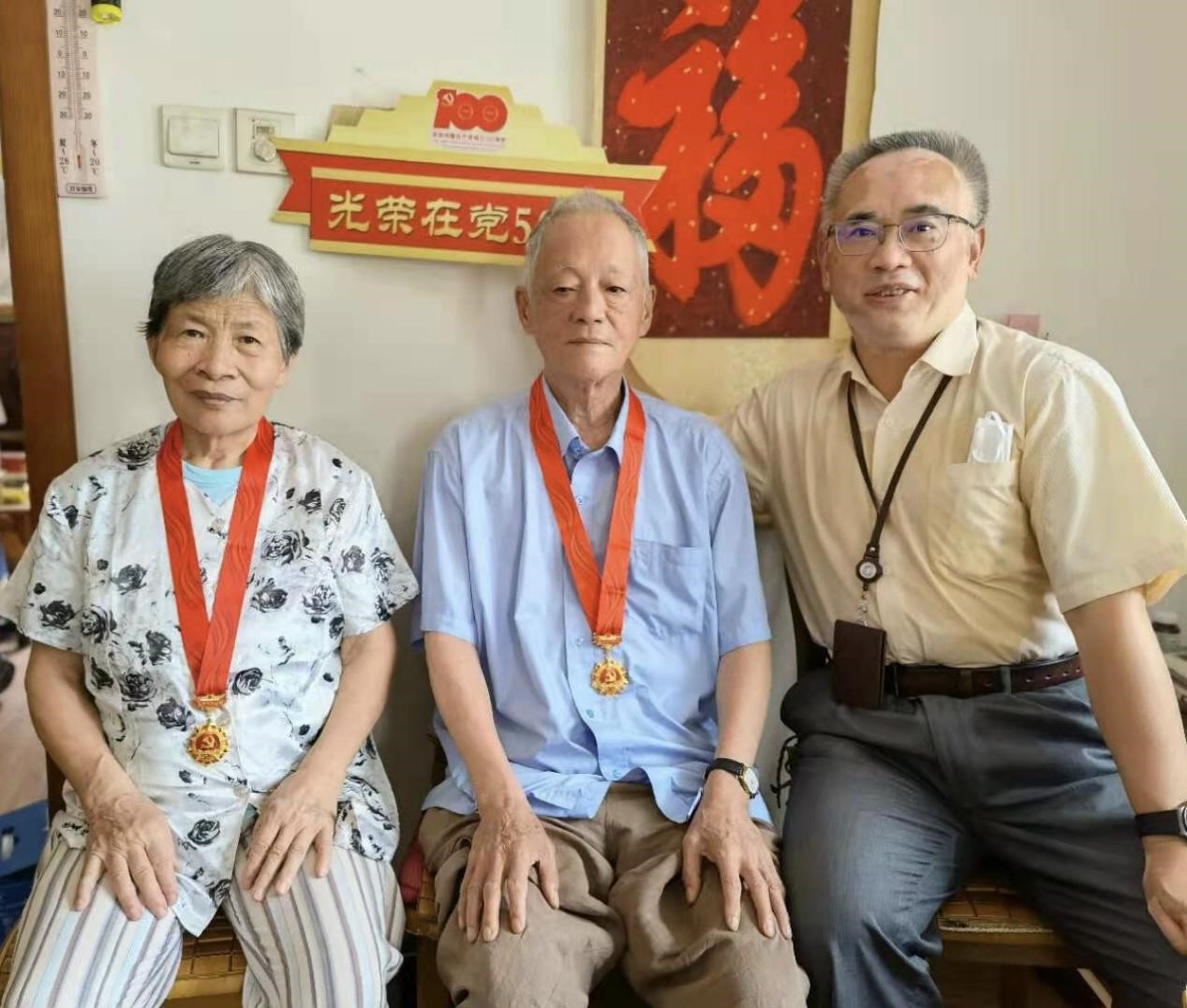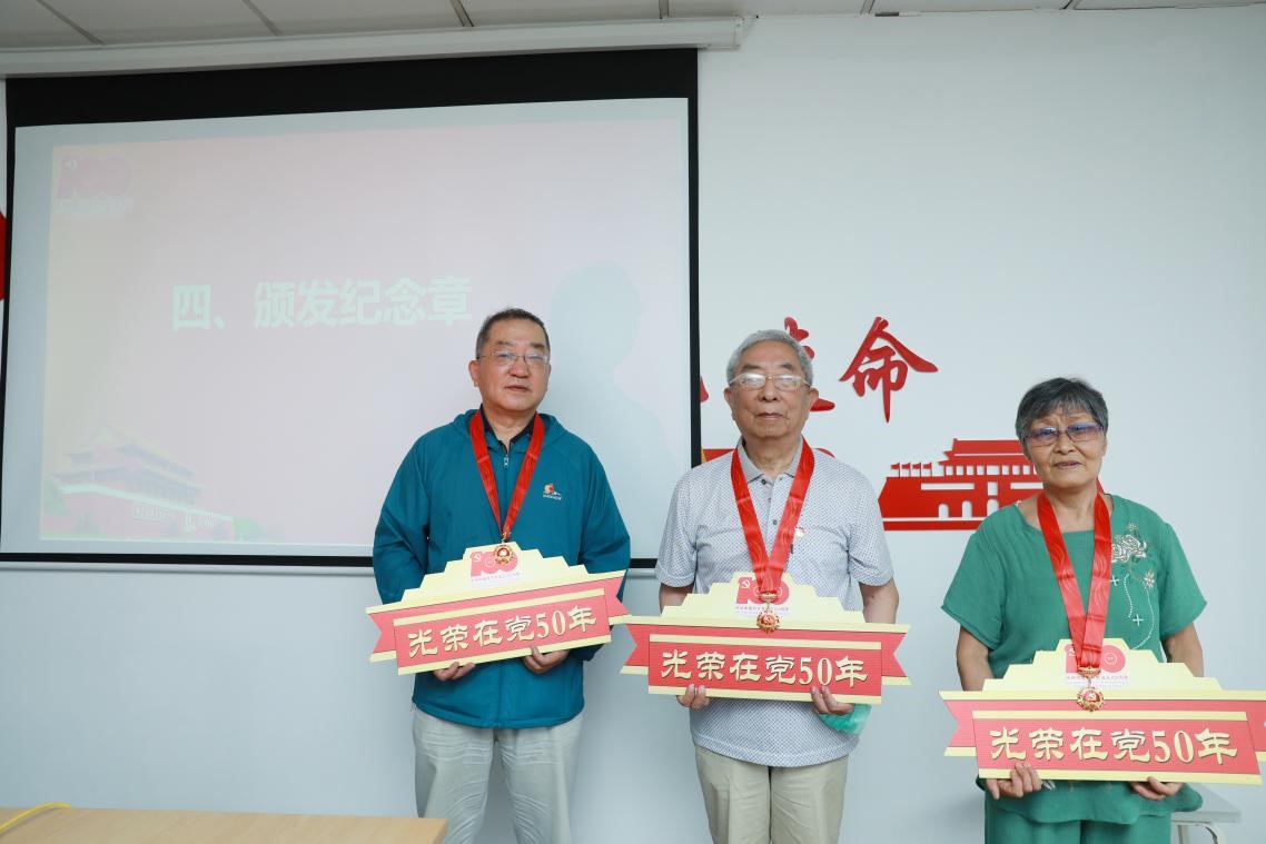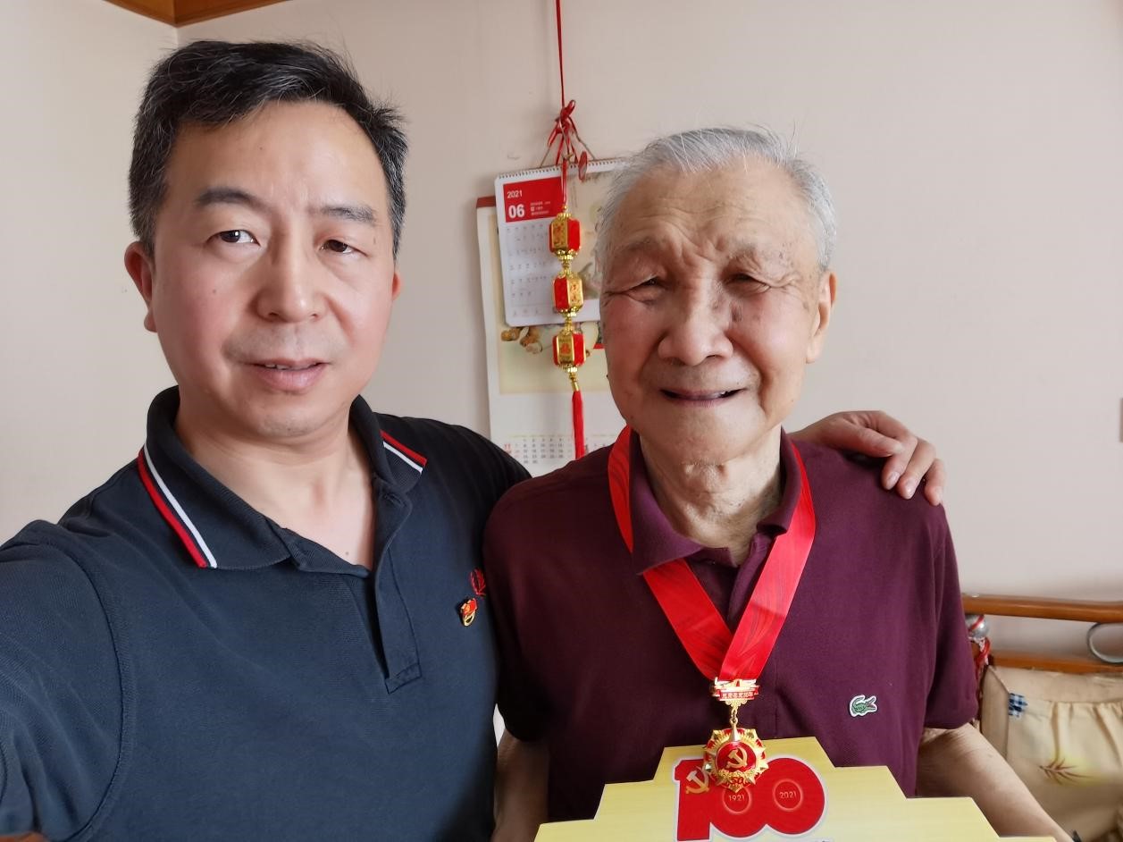 中国共产党成立100周年之际,中共中央办公厅印发《关于做好“光荣在党50年”纪念章颁发工作的通知》,这项工作是中国共产党成立100周年庆祝活动的重要组成部分。50多载的日日夜夜,半个世纪的拼搏奋斗,老党员坚守岗位默默奉献,生动体现了中国共产党人对理想信念的虔诚执着、对党和人民的无比忠诚、对红色基因的传承弘扬。今年,上海大学教务部共有15名老党员获得“光荣在党50年”殊荣。其中,穆青老师党龄已有74年。谢颖达老师已是96岁高龄,党龄也有71年;七一前夕,机关四总支、教务评估党支部、现教中心党支部和工训中心党支部领导分别走访慰问了部分老党员,为因身体原因未能到现场的部分老党员送去“光荣在党50年”纪念章,希望老同志身体健康、心情愉快,离岗不离党、退休不褪色,充分发挥政治优势和经验优势。