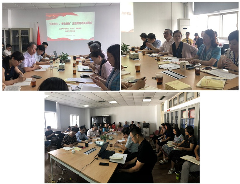 顾晓英书记传达了中共中央、上海大学关于开展“不忘初心、牢记使命”主题教育的相关精神和工作部署,以及开展主题教育的重要意义、目标任务和具体要求,并结合机关党委制定的“不忘初心、牢记使命”主题教育实施方案进行了工作部署安排。顾晓英书记开展主题教育提出要求:深刻领会开展主题教育的重大意义;切实抓好学习教育,每一个党员必须原原本本读三本书,做到学习有痕迹;认真找差距找问题,落实整改到具体问题上。顾晓英书记指出了党支部整改具体办法和今后支部组织生活的创新方式方法,强调每一位党员和教职工都必须积极主动参与到本次主题教育,做到每一次教育学习都有所悟、有所提升。