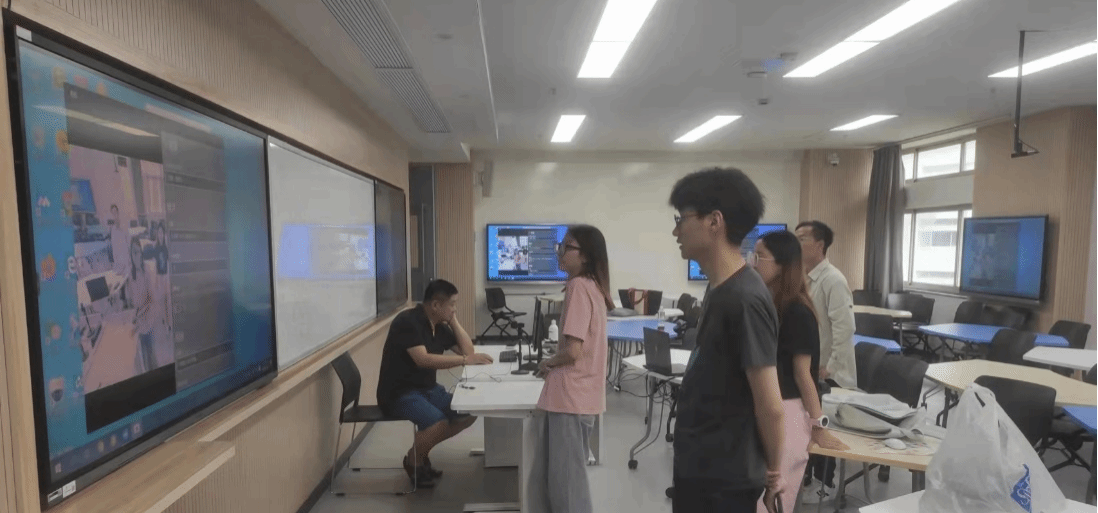 此次“兆易创新杯”“安谋科技杯”上海赛区决赛,共有278支参赛队伍参与,需调用现教中心所辖B教学楼的9间智慧教室作为答辩场所。为保证25号和26号两天,参赛选手们能拥有良好的答辩环境和切实可靠的信息化软硬件设备支撑,竞赛组织方研工部鞠老师等,联合现教中心与信息办的相关领导、老师们,于24号展开了赛事前期准备工作。