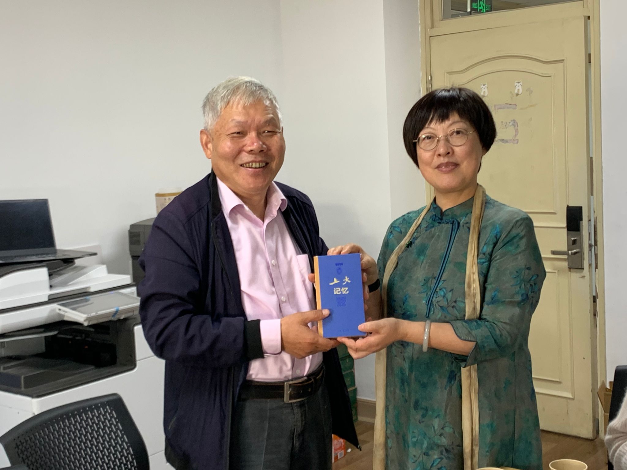 会上,顾晓英老师向老同志们赠送《上大记忆(2023)》纪念册,寓意传承上大百年发展历程,继往开来不断进取。顾老师向老同志逐个送上纪念品,并祝愿他们的退休生活健康幸福、快乐美满。