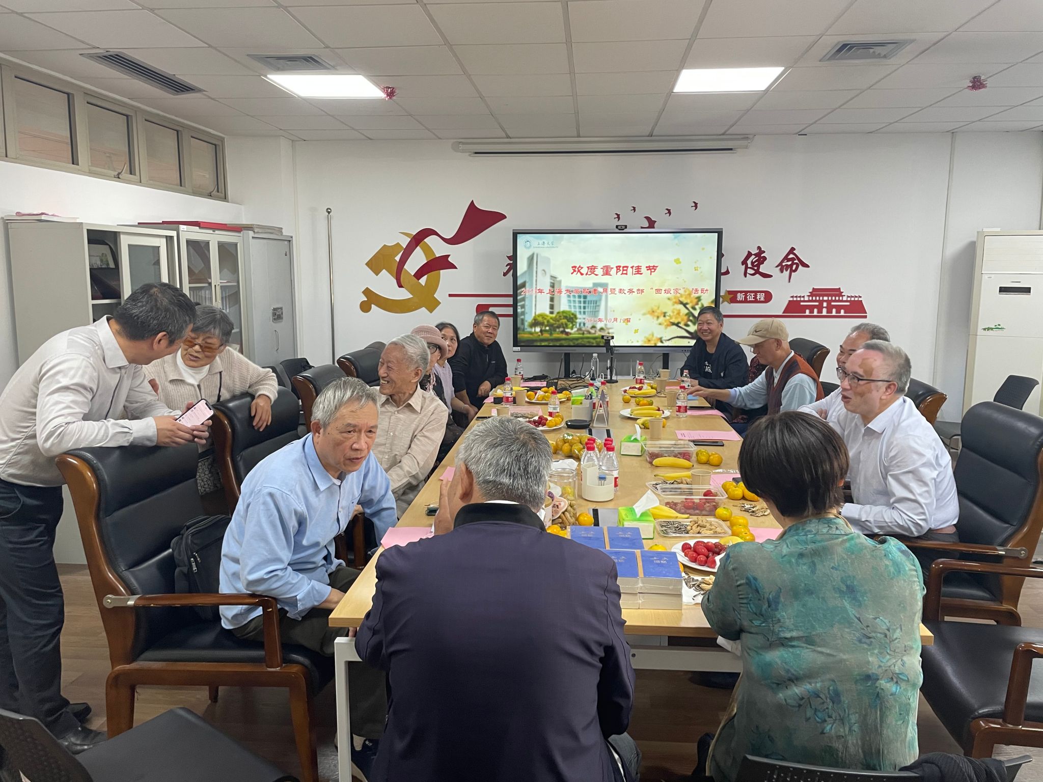 疫情结束,又到佳节,丹桂飘香,金风送爽。每年农历9月初9是传统佳节重阳节,在全国第十四个“敬老月”和上海市第36个敬老日即将来临之际,10月19日,教务部在A508会议室举行了“2023年上海大学敬老月暨教务部‘回娘家’活动”。部分离退休教职工、教务部常务副部长彭章友、副部长辛明军、副部长顾晓英、综合办主任黄欢,还有各部门在职教职工代表参加了活动,会议由顾晓英主持。