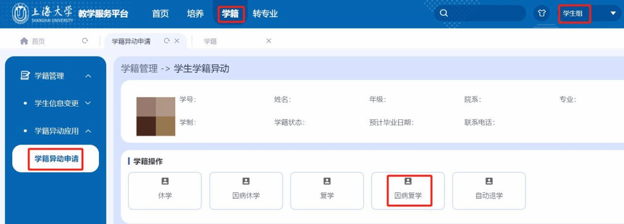 1. 路径:【学籍】-【学籍管理】-【学籍异动应用】-【学籍异动申请】