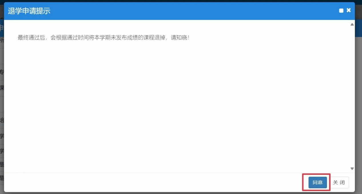 (5)提交申请后,仔细阅读“退学申请提示”,并选择【同意】;