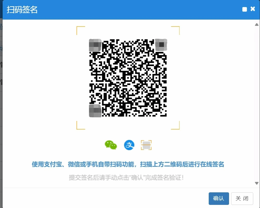 (6)点击【提交申请】,出现二维码,用手机扫一扫功能扫二维码并进行签名。
