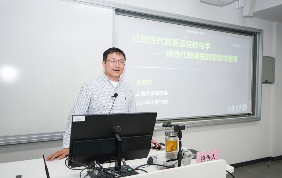4月19日下午,学校举办了 “首届上海高校示范性本科课堂” 第二场教学经验分享活动。来自理学院数学系的王卿文教授以“让线性代数更适宜教和学—一流课程的建设与思考”为主题同来自校内、校外50余位老师开展深入研讨交流。教务部副部长、教发中心主任辛明军、理学院教学院长余长君出席并参与了本次活动,活动由教发中心副主任单娟老师主持。