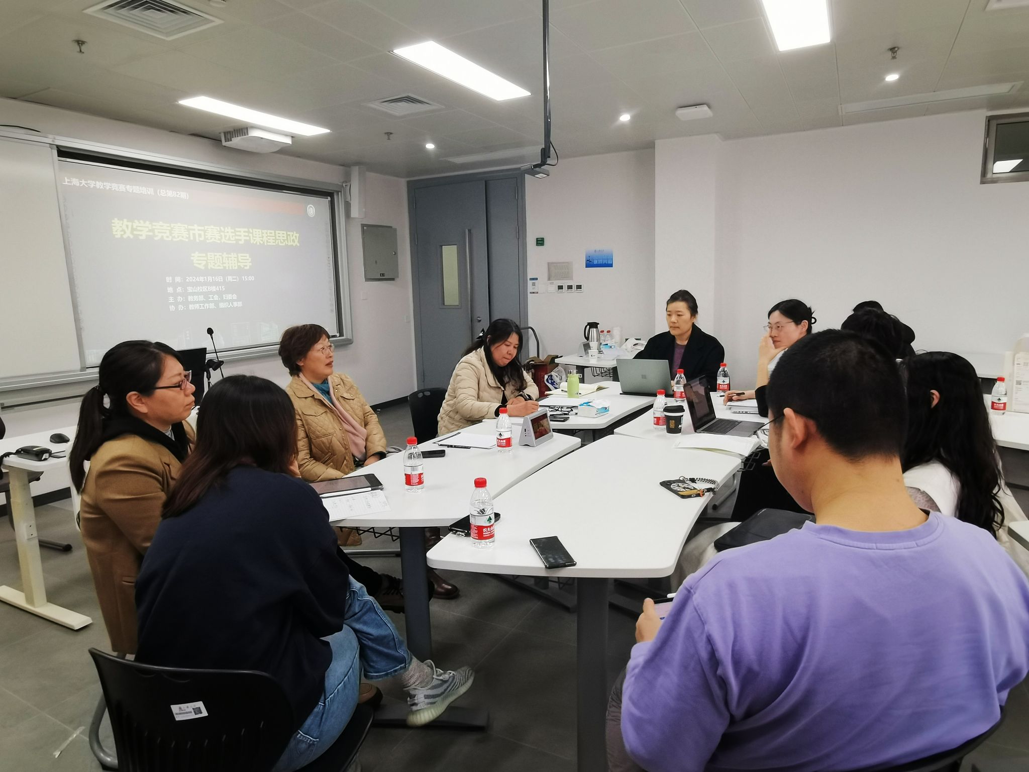 1月17日下午,为进一步帮助教学竞赛市赛选手备赛,学校教发中心在宝山校区B楼415举办了教学竞赛市赛选手课程思政专题辅导会。特邀上海大学教务部副部长、教育部课程思政教学研究中心负责人顾晓英教授做专题辅导,学校创新赛市赛选手、青教赛市赛选手、教发中心工作人员参与了本次辅导会。