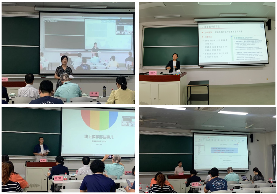 9月9日在线教学专场主要针对新开课教师的在线教学遇到的系列问题进行培训,本次培训邀请了理学院教师王玉超、超星公司业务经理胡子琦和生命学院教学院长袁晓君讲解线上教学及建课相关知识,培训会由教发中心副主任单娟主持。首先,王老师从自身课程建设的经验出发,分享了混合式课程的准备和实施过程。其次,胡子琦详细讲解了超星平台线上建课和线上教学的功能,为老师们扫除技术障碍。接下来,袁老师以《植物与人类文明》课程为例,从建课准备、教学设计和教学方法三个方面分享了自己的教学心得和体会,并向参会老师详细演示了如何利用超星的“一平三端”,实现强交互、持续改进的混合式教学。最后,教务部现教中心主任陈章进教授对本次培训进行总结,并对学校智慧教学资源的深入建设谈了自己的看法。