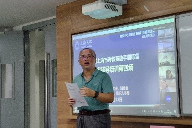7月12日下午,为了深入落实本科教育大会精神,加强教师教学能力培训体系的顶层设计,并进一步提升我校参加市青教赛五位选手的比赛技能和水平,学校通过线上线下相结合的方式,利用假期时间举办市青教赛选手训练营的第四场校内专题培训会。本次会议特邀国青赛一等奖获得者、上海外国语大学顾秋蓓老师,国青赛一等奖获得者、上海交通大学的刘晓晶老师,上海大学原副校长、校教学咨询专家叶志明教授、校教学咨询专家文铁桥教授和刘旭光教授担任指导专家。校党委常委、副校长聂清、校工会常务副主席顾莹、教师工作部副部长孙琦琰、人事处副处长霍伟伟、校工会副主席勾金华、各教学单位的教学院长、各青教赛选手及其学院支持团队40余人参加了本次培训会。培训会由教务部副部长、教师教学发展中心主任辛明军主持。