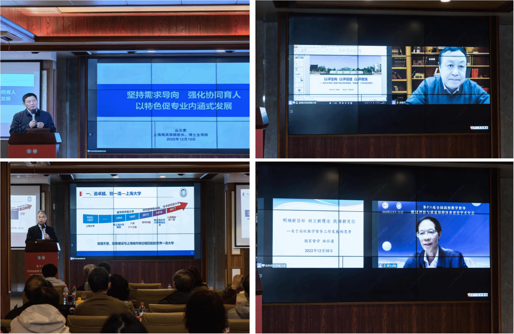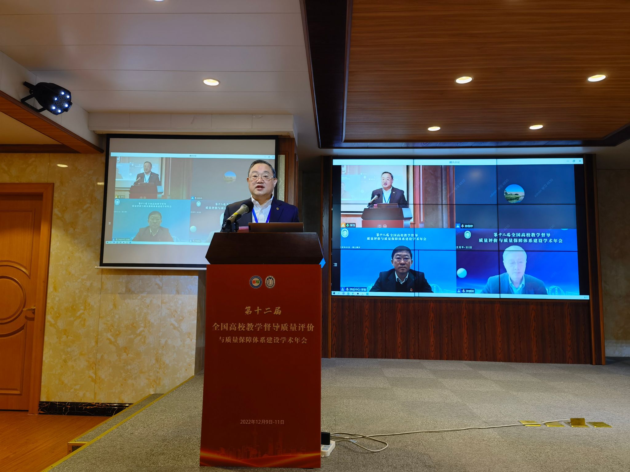 为了进一步加快建设新时代高校教育质量保障体系,促进高校全面提高人才自主培养质量,实现高校办学质量的内涵跨越式发展,在初冷乍寒的上海,由上海大学承办的第十二届全国高校教学督导、质量评价和质量保障体系建设学术年会于2022年12月9日-11日在宝山区维也纳酒店顺利召开。本次大会由全国高等教育教学督导协作组主办,受疫情影响,以线上线下相结合的方式进行。教育部有关部门领导、学校领导和应邀为大会作报告的全国知名专家20余人,以及国内100余所高校的500余名代表参加了此次盛会。大会以主旨报告、“浦江论坛”的传统形式开展。同时,第一次将质量评价与教师发展纳入本次年会的主题,邀请全国高校的七位教发中心主任举行主题论坛。本次学术年会由上海大学教务部常务副部长、教学改革处处长彭章友教授主持。