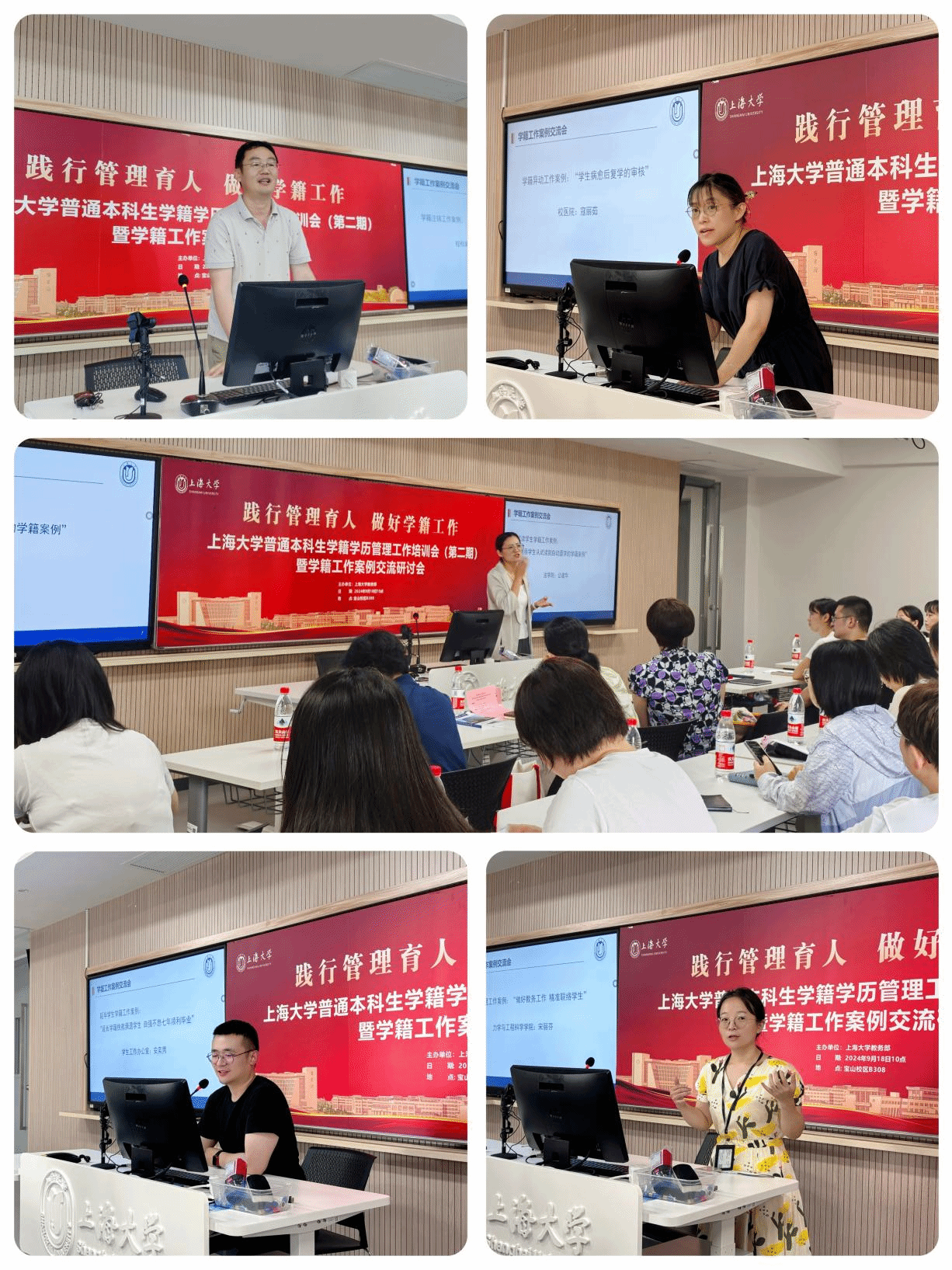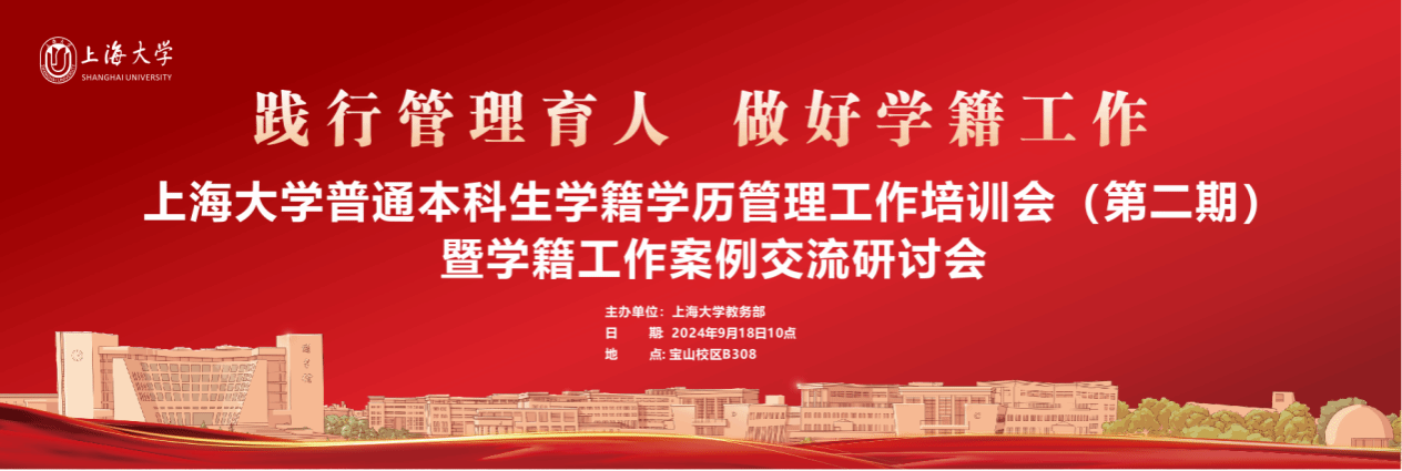 为了深入学习二十届三中全会精神,加快建设高质量教育体系,统筹推进育人方式、管理体制,进一步贯彻全国教育大会精神,进一步总结我校普通本科生学籍学历管理工作经验,传扬上大精神,激发奋进力量,9月18日,上海大学教务部举办上海大学普通本科生学籍学历管理工作培训(第二期)暨学籍工作案例交流研讨会。上海大学教务部副部长、教育部课程思政教学研究示范中心(上海大学)负责人顾晓英,上海大学教务部教学运行处处长袁晓君,及学生工作办公室、校档案馆、校医院、各学院辅导员、教学秘书代表等30余人参加会议。